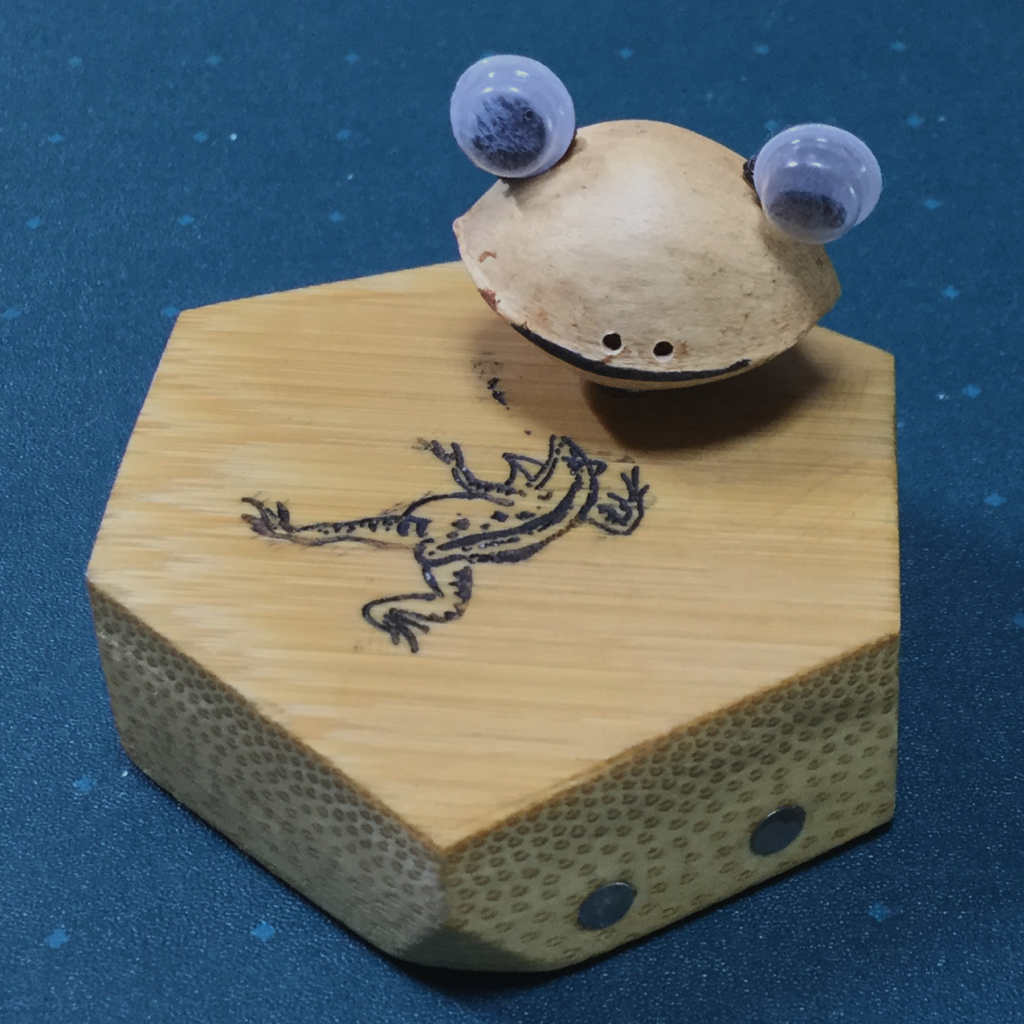 2019-12-25 / 最終更新日 : 2019-12-25 takehiro_hirano どんぐり 新作「どんがえる」 生物多様性のマスコットキャラクター第三弾「どんがえる」!おいらのヘッドは銀杏、お目目はスイカの種(ドールアイバージョンも)、呼吸できるよう鼻の穴、胴体はドングリ、手足は竹ひごとレーザー加工品の合体だ! おいらのヘッドに1個、どんぐり胴体には2個の磁石がついてるぜ。頭だけでも冷蔵庫にへばりつく! マジでカエルになろうとしたヤバイ奴もいるけど、いい奴なんでヨロシク! Follow me! 共有:クリックして Twitter で共有 (新しいウィンドウで開きます)Facebook で共有するにはクリックしてください (新しいウィンドウで開きます)クリックして Google+ で共有 (新しいウィンドウで開きます)いいね:いいね 読み込み中... 関連 FacebooktwitterHatenaPocket コメントを残す コメントをキャンセルメールアドレスが公開されることはありません。 * が付いている欄は必須項目ですコメント 名前 * メール * サイト 次回のコメントで使用するためブラウザーに自分の名前、メールアドレス、サイトを保存する。 新しいコメントをメールで通知 新しい投稿をメールで受け取る