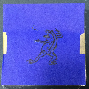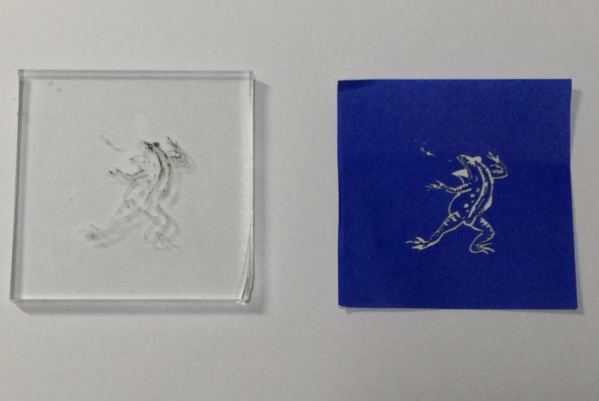 青い色紙だとアクリル板は焦げませんでした。色紙を除くと正確に画像が彫られていました。水洗いで焦げた紙は取り除けました。