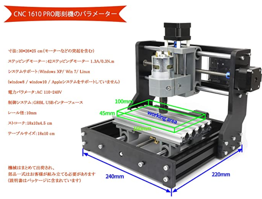 竹材の加工を広げるため、きれいに溝などを切削できるCNCフライス(CNC 1610 PRO、RATTMMOTOR)を購入しました。半日で組み立て付属ソフトをパソコンにインストールして作動を確認しました。