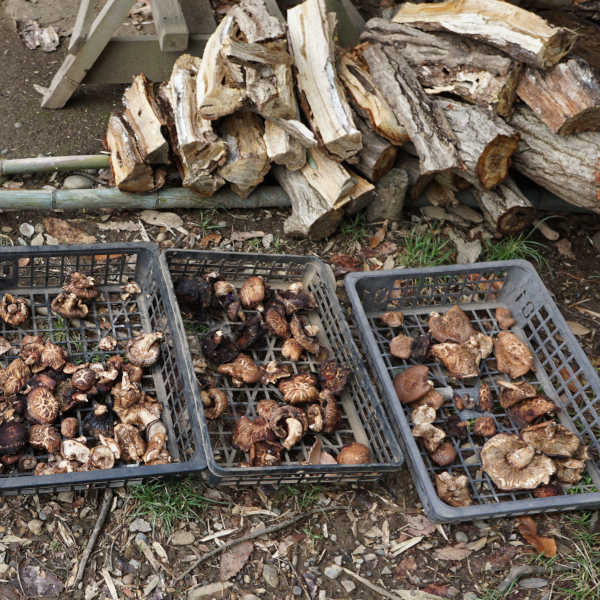 3年目の秋口にはシイタケ採取ができます。採りたてのシイタケを火で炙りポン酢で食べると美味しいですよ。