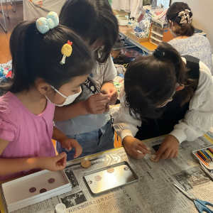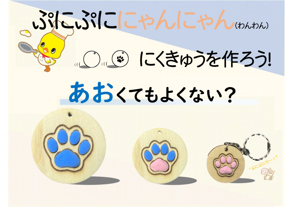 試みに青い肉球を用意してみました。人気が無いのではないかと、内心不安でしたが準備した肉球の材料はすべて使ってくれました。子どもたちの常識にとらわれない好奇心を改めて感じました。