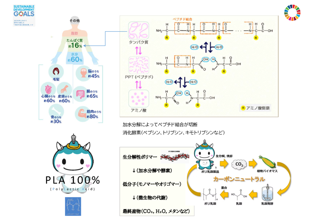 原料のプラスチックは生分解性ポリマー、Poly Lactic Acid(PLA)を用いており、その説明図に興味を持たれて方はごく少数でした。