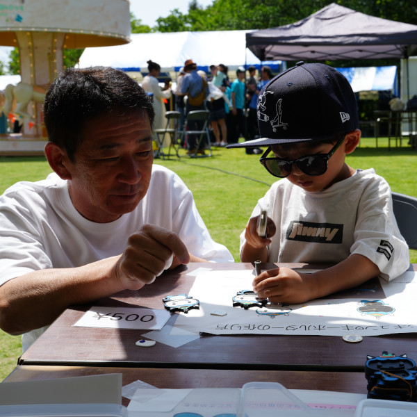 工作ではプラスチックハンマーを使いましたが、子どもたちは夢中になって部品をトントンと打ち込んでいましたが、中にはお父さんの助太刀もありました。